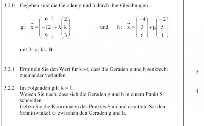 Ermitteln Sie Den Wert Fur K So Dass Die Geraden G Und H Senkrecht Zueinander Verlaufen Mathelounge